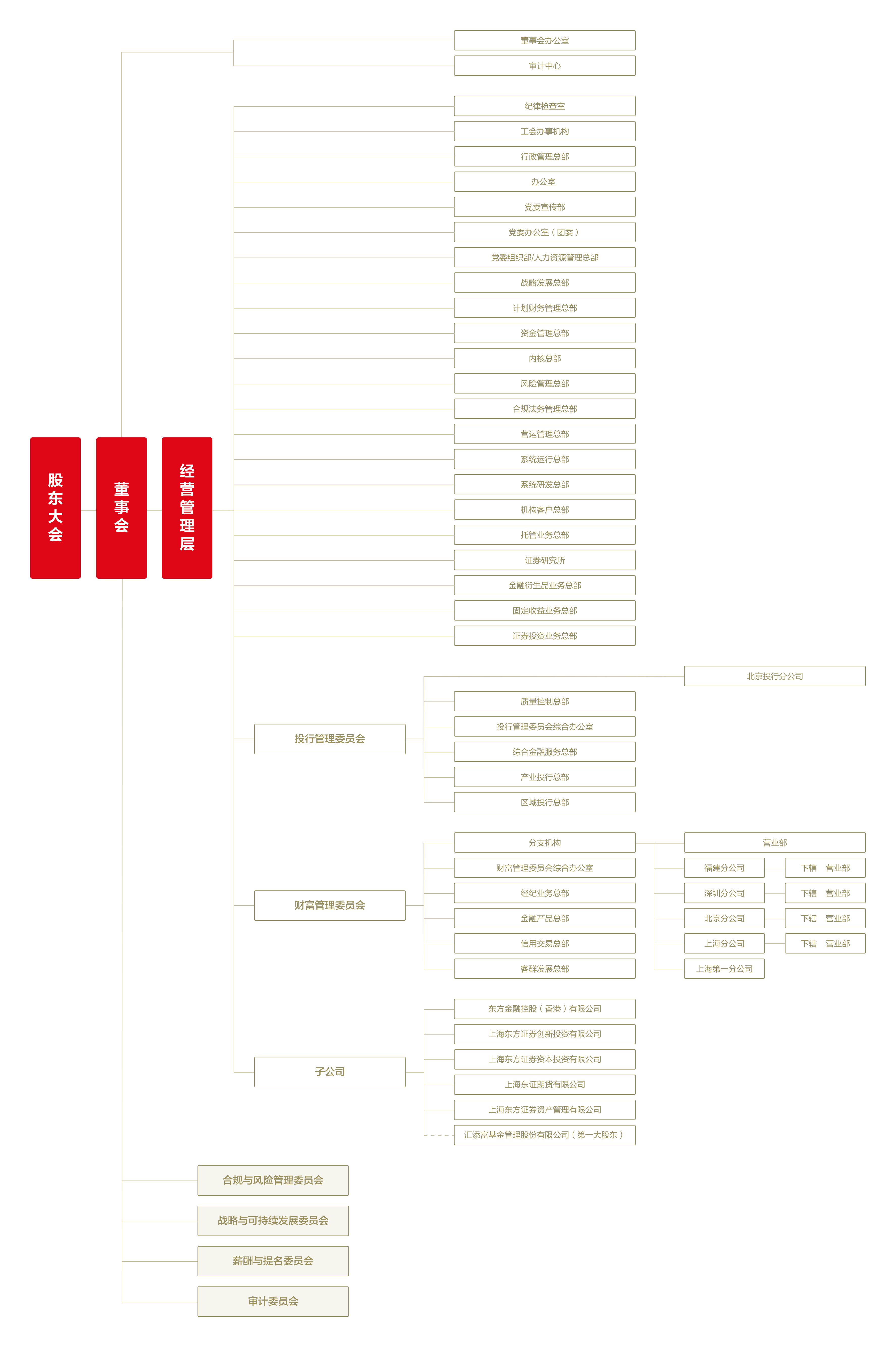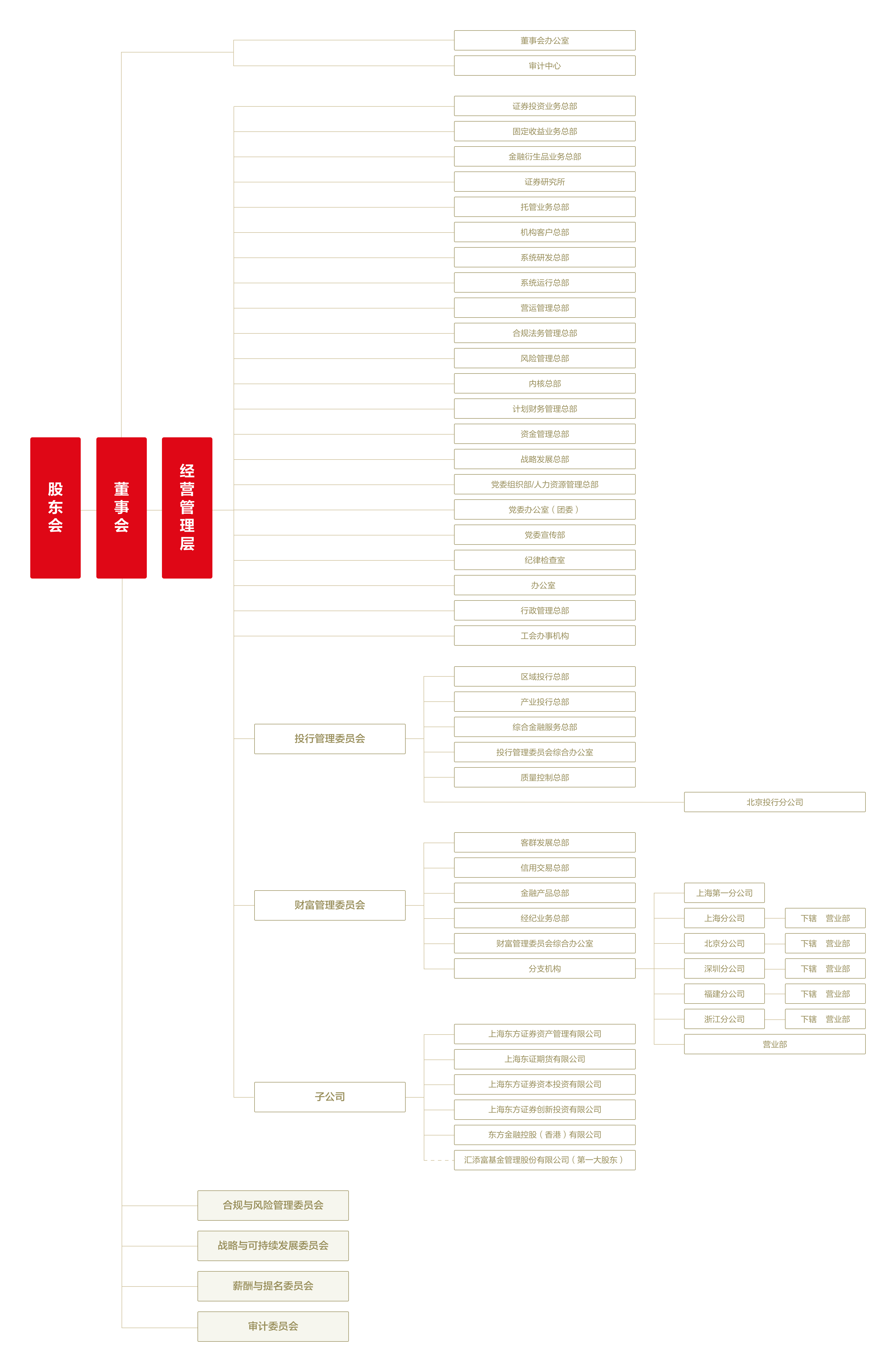 公司全资持有上海东证期货有限公司、上海东方证券资产管理有限公司、上海东方证券资本投资有限公司、东方金融控股(香港)有限公司、上海东方证券创新投资有限公司,同时作为第一大股东参股汇添富基金管理股份有限公司。